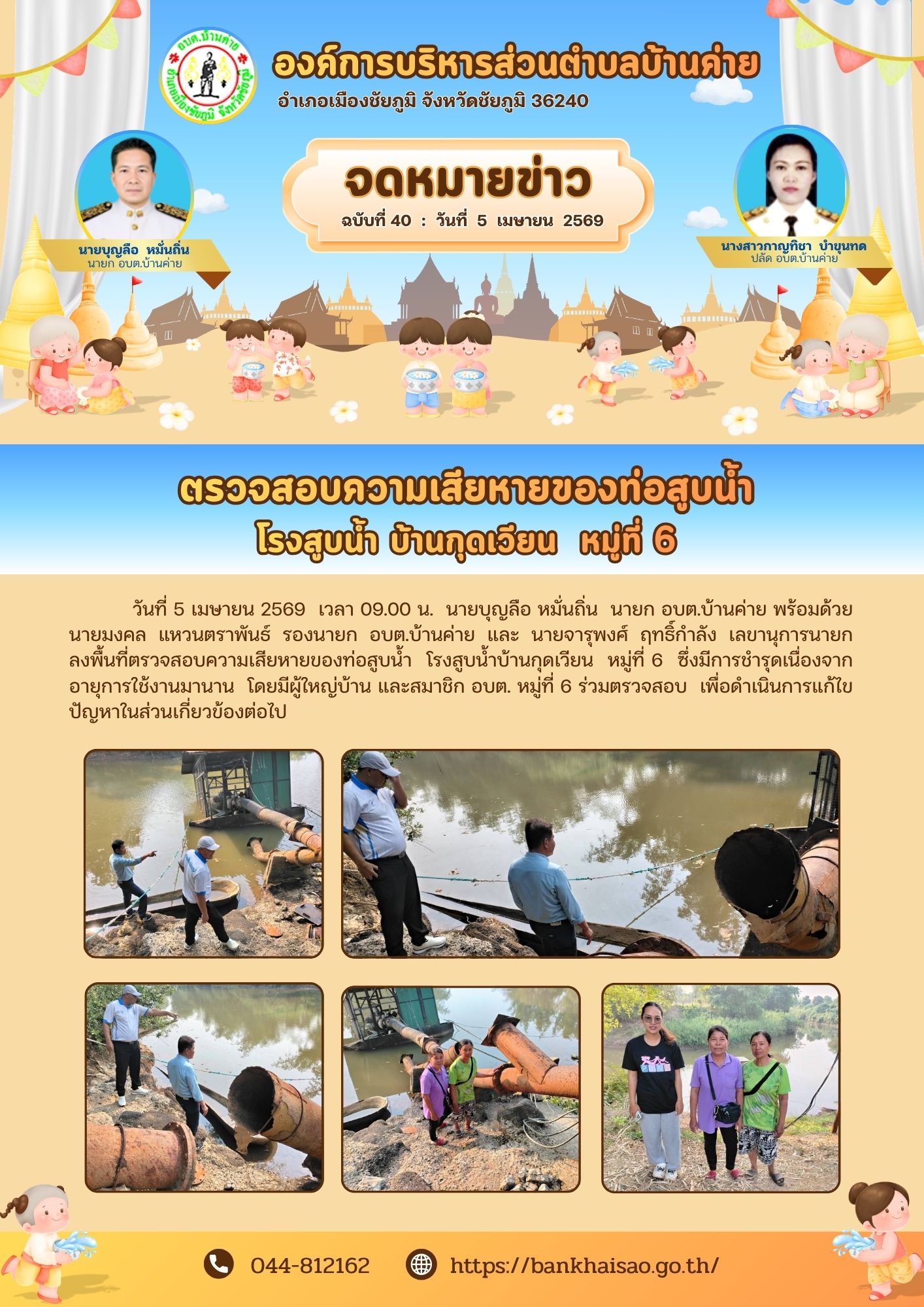 ตรวจสอบความเสียหายของท่อสูบน้ำโรงสูบน้ำ บ้านกุดเวียน หมู่ที่ 6...