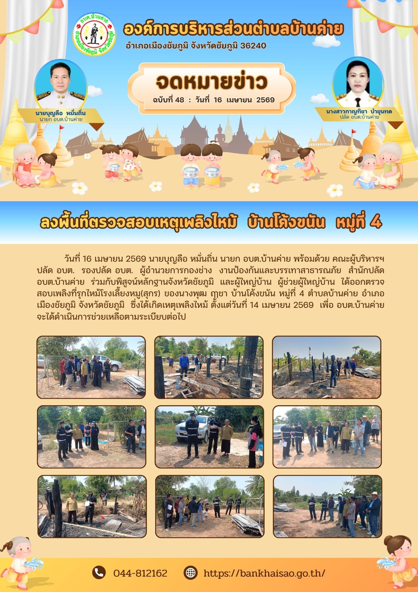 ลงพื้นที่ตรวจสอบเหตุเพลิงไหม้ บ้านโค้งขนัน หมู่ที่ 4...