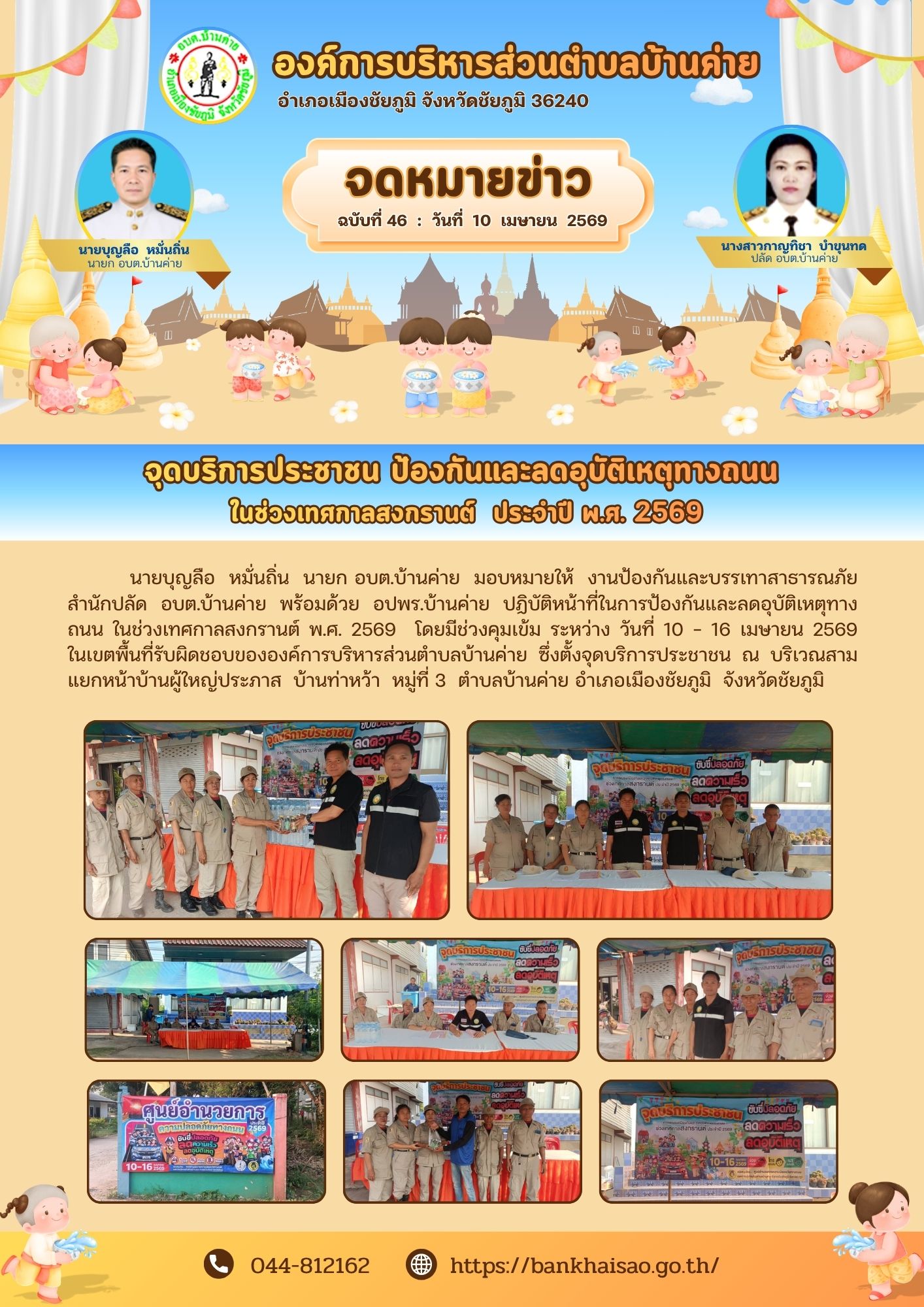 จุดบริการประชาชน ป้องกันและลดอุบัติเหตุทางถนน ในช่วงเทศกาลสงกรานต์ ประจำปี พ.ศ.2569...