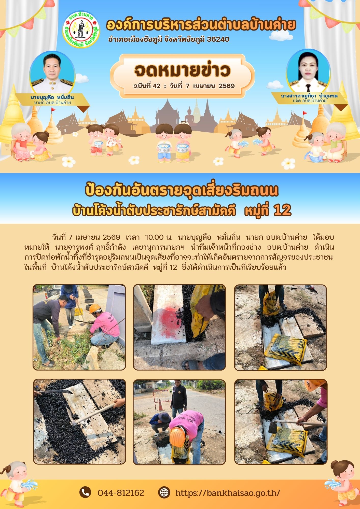 ป้องกันอันตรายจุดเสี่ยงริมถนน บ้านโค้งน้ำตับประชารักษ์สามัคคี หมู่ที่ 12...