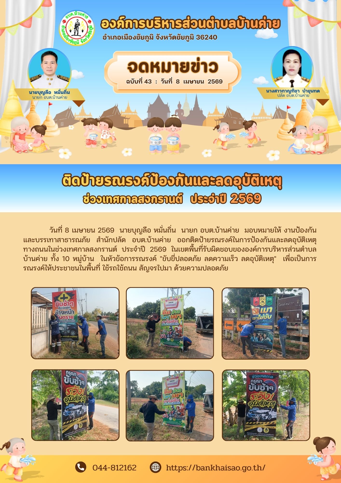 ติดป้ายรณรงค์ป้องกันและลดอุบัติเหตุ ช่วงเทศกาลสงกรานต์ ประจำปี 2569...