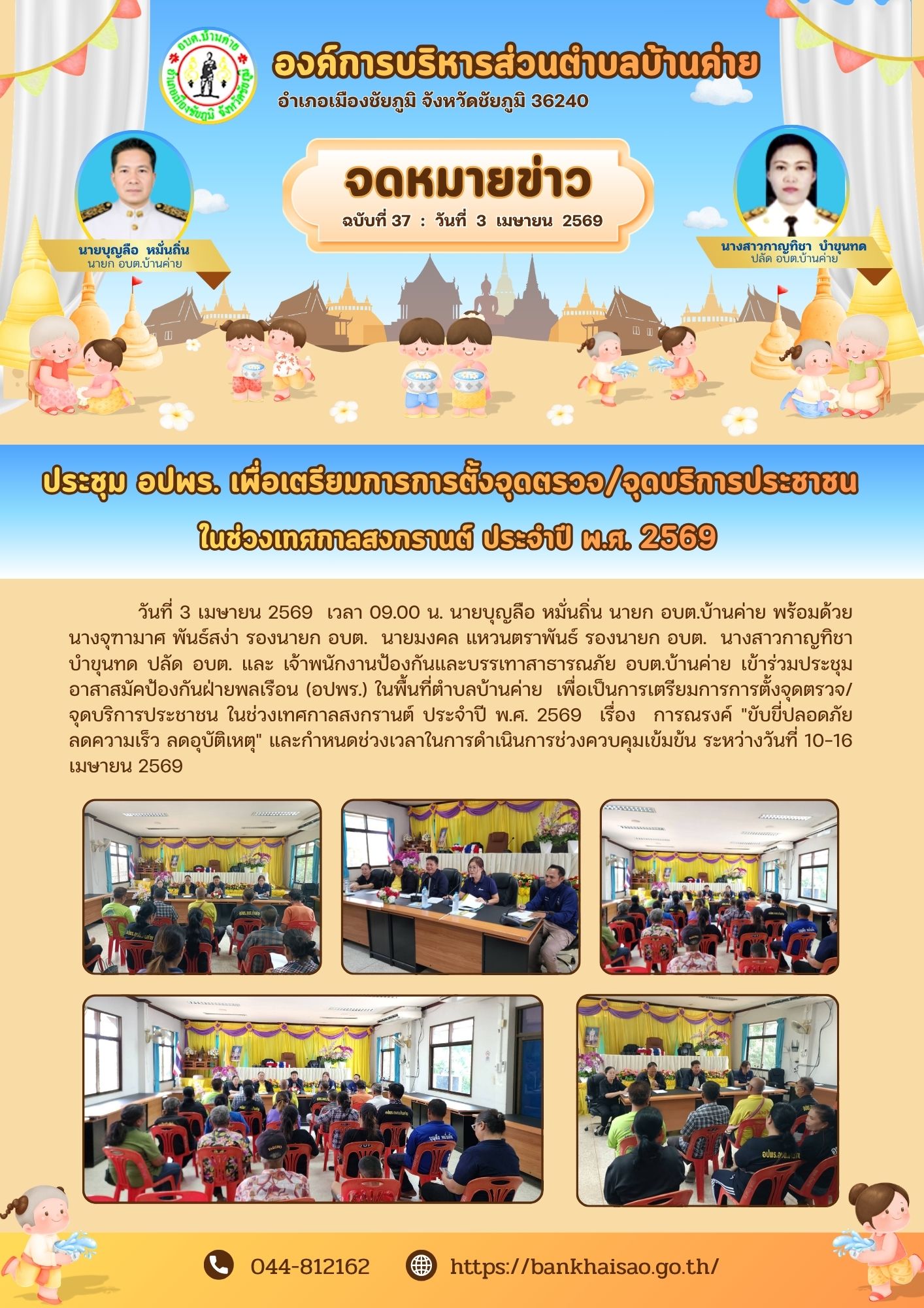 ประชุม อปพร. เพื่อเตรียมการการตั้งจุดตรวจ/จุดบริการประชาชน ในเทศกาลสงกรานต์ ประจำปี พ.ศ.2569 ...