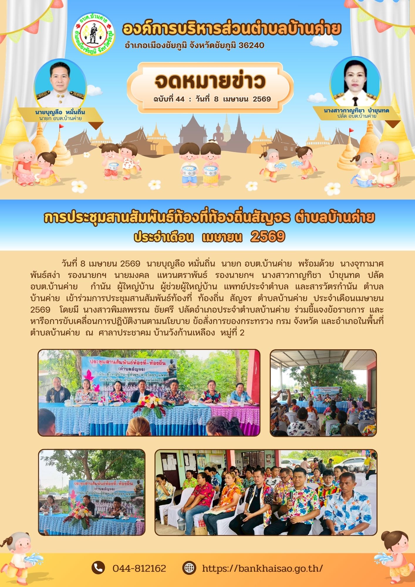 การประชุมสานสัมพันธ์ท้องที่ท้องถิ่นสัญจร ตำบลบ้านค่าย ประจำเดือน เมษายน 2569...