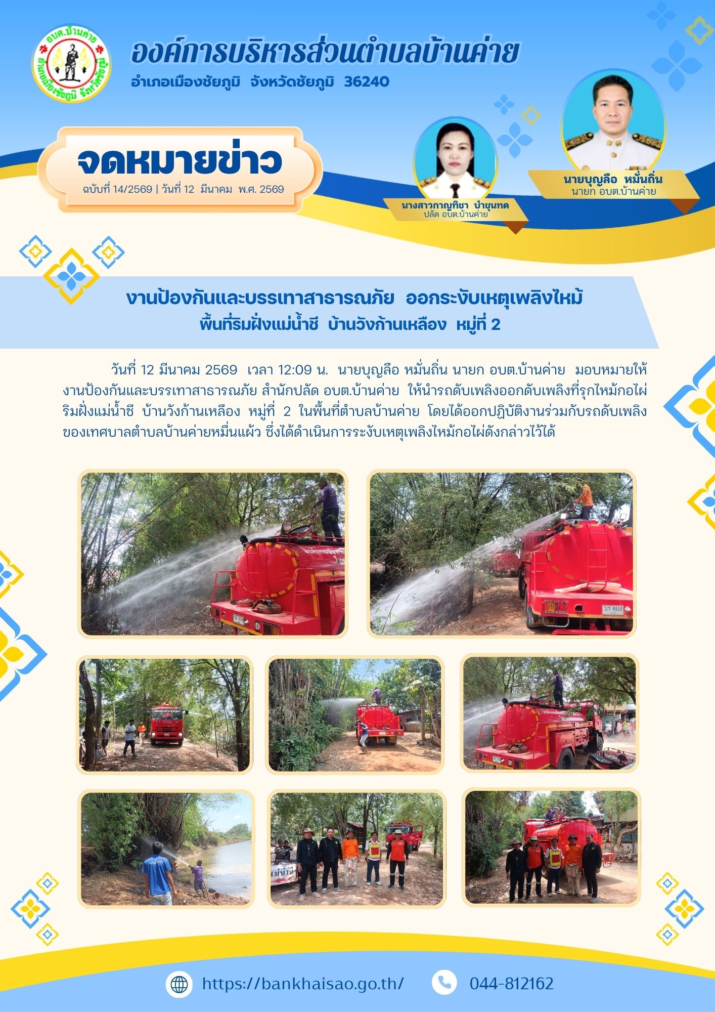 งานป้องกันและบรรเทาสาธารณภัย อกระงับเหตุเพลิงไหม้ พื้นที่ริมฝั่งแม่น้ำชี บ้านวังก้านเหลือง หมู่ที่ 2...