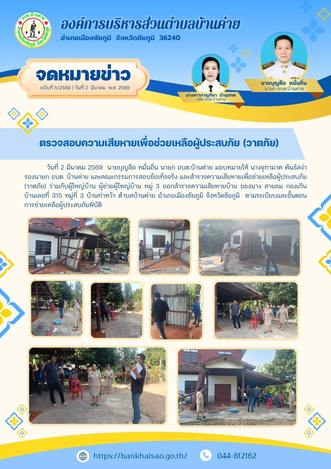 ตรวจสอบความเสียหายเพื่อช่วยเหลือผู้ประสบภัย (วาตภัย)...
