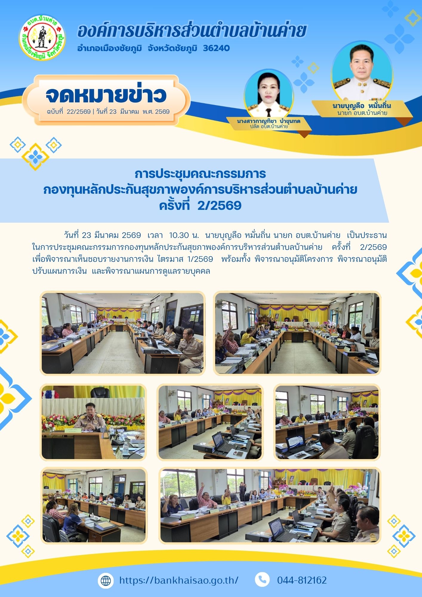 การประชุมคณะกรรมการกองทุนหลักประกันสุขภาพองค์การบริหารส่วนตำบลบ้านค่าย ครั้งที่ 2/2569...