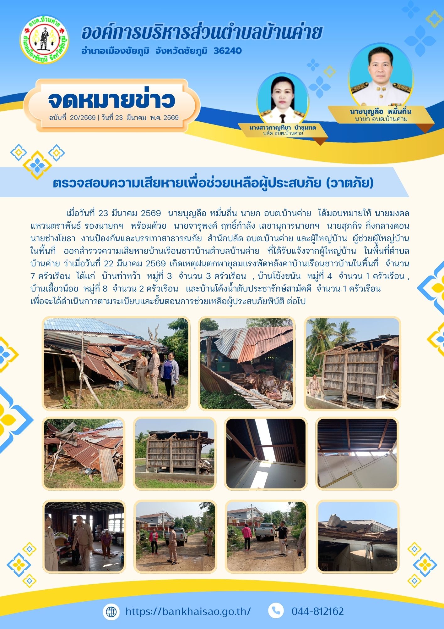 ตรวจสอบความเสียหายเพื่อช่วยเหลือผู้ประสบภัย (วาตภัย)...