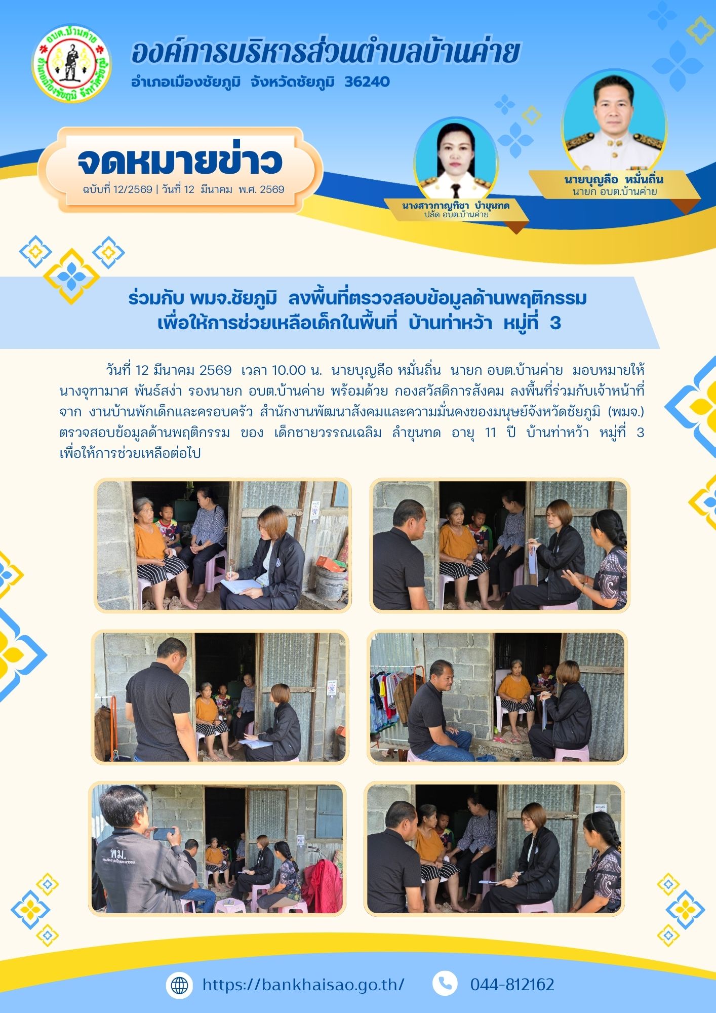 ร่วมกับ พมจ.ชัยภูมิ ลงพื้นที่ตรวจสอบข้อมูลด้านพฤติกรรมเพื่อให้การช่วยเหลือเด็กในพื้นที่ บ้านท่าหว้า หม�...