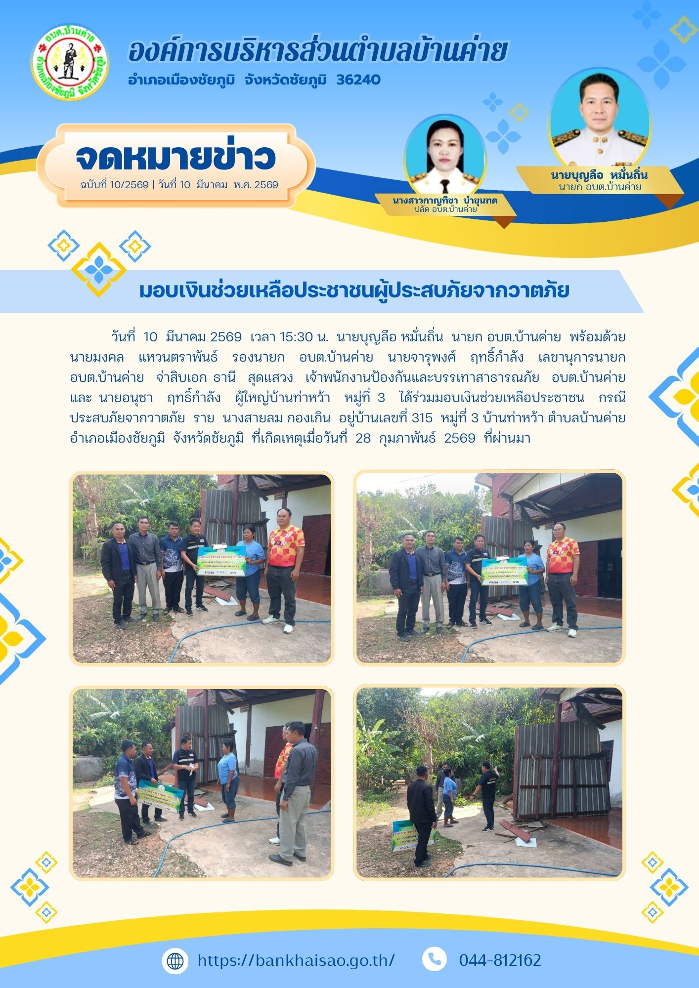 องค์การบริหารส่วนตำบลบ้านค่าย ลงพื้นที่ช่วยเหลือประชาชนผู้ประสบภัยจากวาตภัย ...